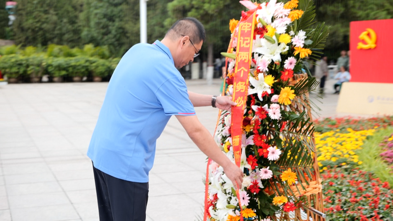 細雨中,在西柏坡紀念館廣場中央,黨委書記、董事長劉曉明帶領全體黨員莊重地向“五大書記”銅像敬獻花籃,全體黨員整齊肅立,瞻仰五大書記銅像,緬懷革命先輩豐功偉績。