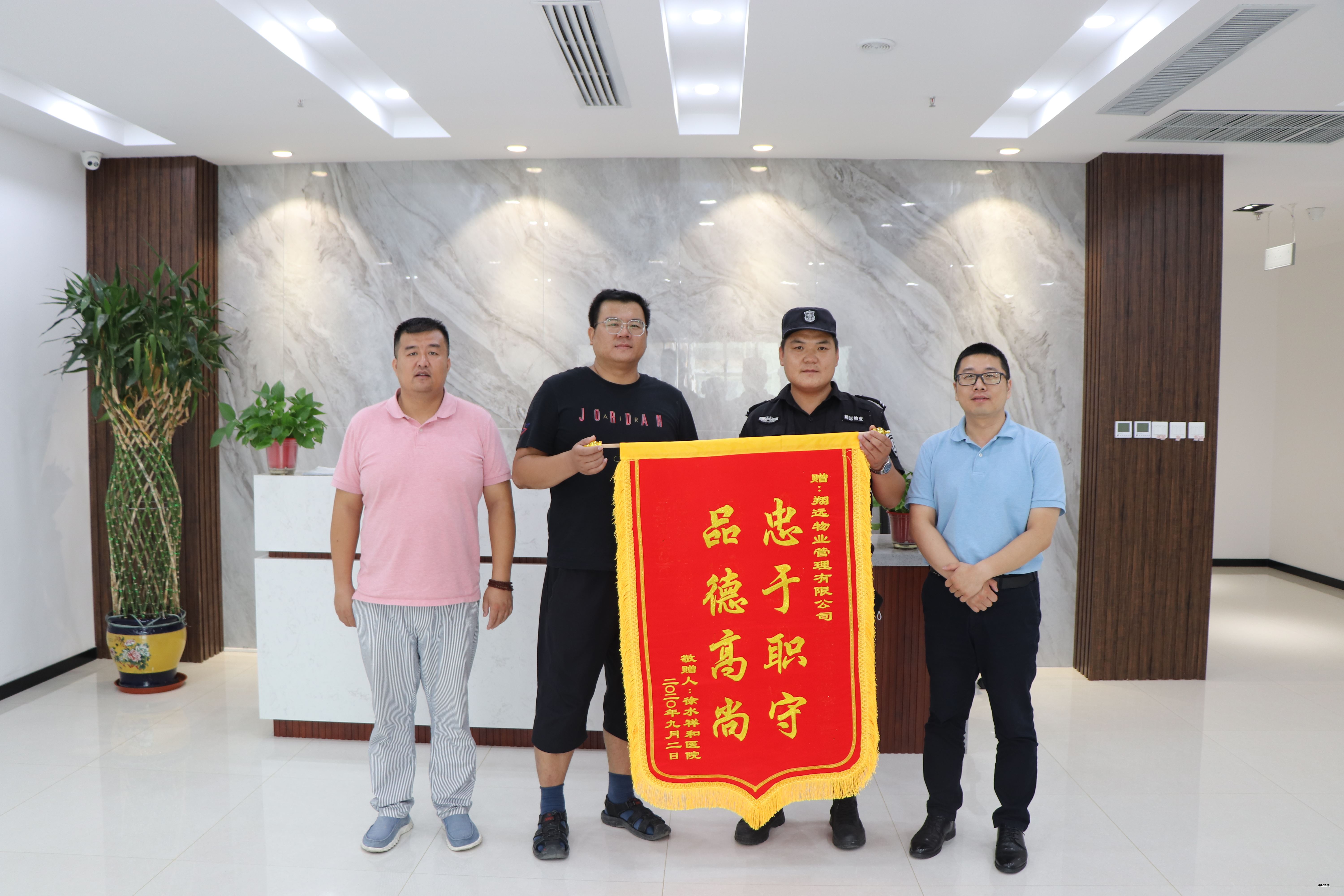 9月2日上午,一位男士手捧一面“忠于職守,品德高尚”的錦旗敲響翔遠物業辦公區的門,進門后非常激動的說:“感謝貴公司領導及保安人員周再,幫我看護車輛保管物品。”